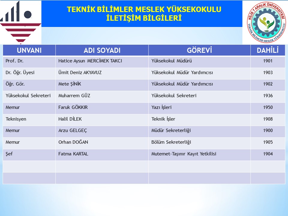 29 Mayıs 2007 tarihli 26536 sayılı Resmi Gazete'de yayımlanarak yürürlüğe giren 5662 numaralı kanunla Kilis 7 Aralık Üniversitesi Meslek Yüksek Okulu olarak eğitim ve öğretim faaliyetlerini sürdürmüştür. Yükseköğretim Kurulu Başkanlığı’nın 12.05.2017 tarihli yazısına istinaden Meslek Yüksekokulu’nun adı Teknik Bilimler Meslek Yüksekokulu olarak değiştirilmiş olup eğitim ve öğretim faaliyetlerine devam etmektedir.