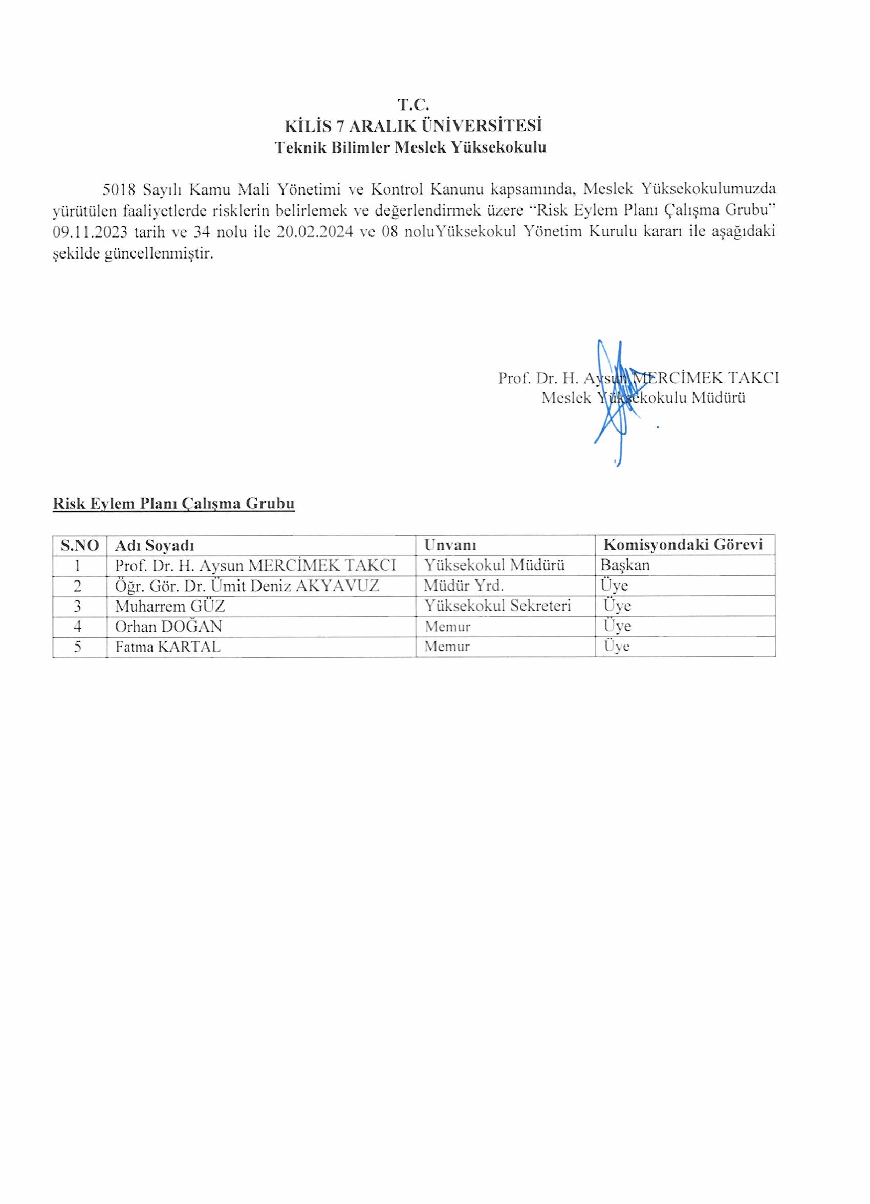 Risk Eylem Planı Çalışma Grubu